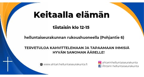 TIISTAISIN klo 12.00 – 15.00 KEITAALLA ELÄMÄN – kokoontuminen rukoushuoneella.